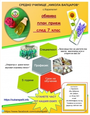 Информация - СУ "Никола Вапцаров" с. Карапелит